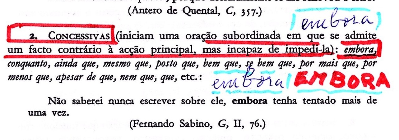 O EMBORA é uma CONJUNÇÃO SUBORDINATIVA - CONCESSIVA
